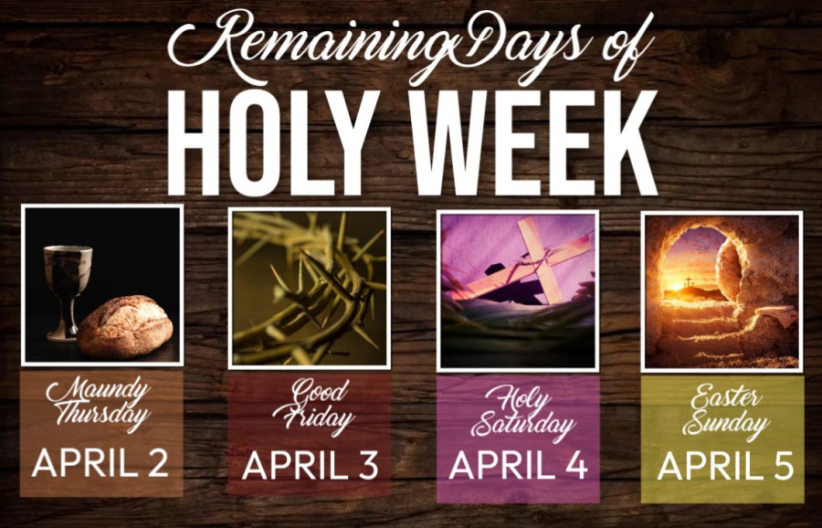 HOLY SATURDAY – Saturday before Easter. Observes the day Jesus was in the tomb. This is a day of somber reflection.